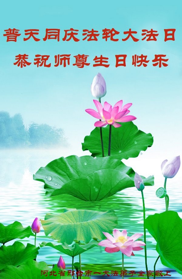 弟子及家人恭祝师父生日快乐!恭贺法轮大法日! 弟子还要再精進,多救人,不辜负师父的要求,正念足,做好三件事。 谢谢师父慈悲救度!祝师父生日快乐! 河北省邢台市平乡县一大法弟子恭贺世界法轮大法日!