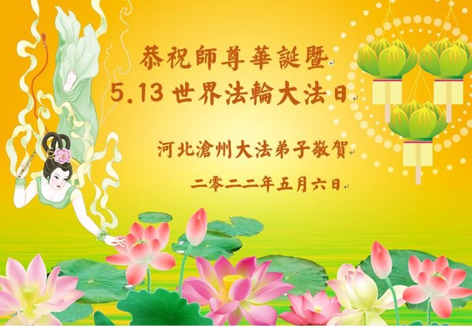 【明慧网二零二二年五月十二日】 河北省沧州市泊头市全体大法弟子恭祝师尊生日快乐!恭贺世界法轮大法日!