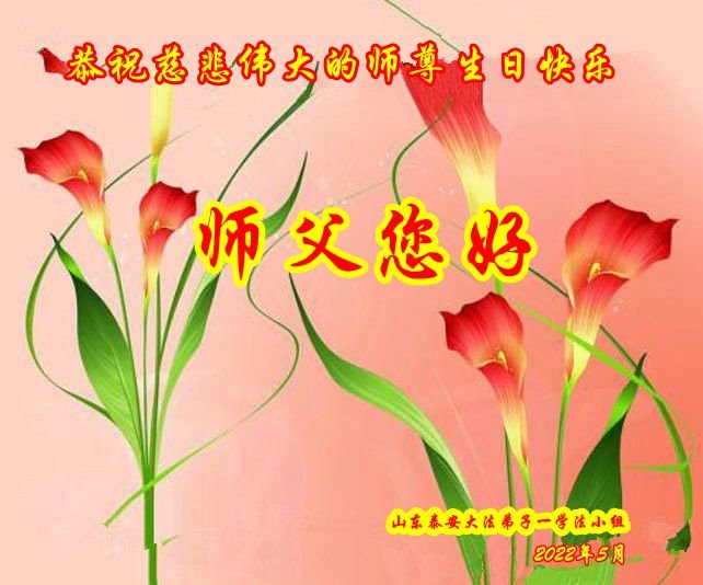 【明慧网二零二二年五月十二日】 山东泰安全体大法弟子恭祝师尊生日快乐!恭贺世界法轮大法日!