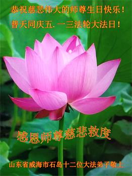 山东省威海石岛母女大法弟子恭祝慈悲伟大的师尊生日快乐!普天同祝世界法轮大法日!