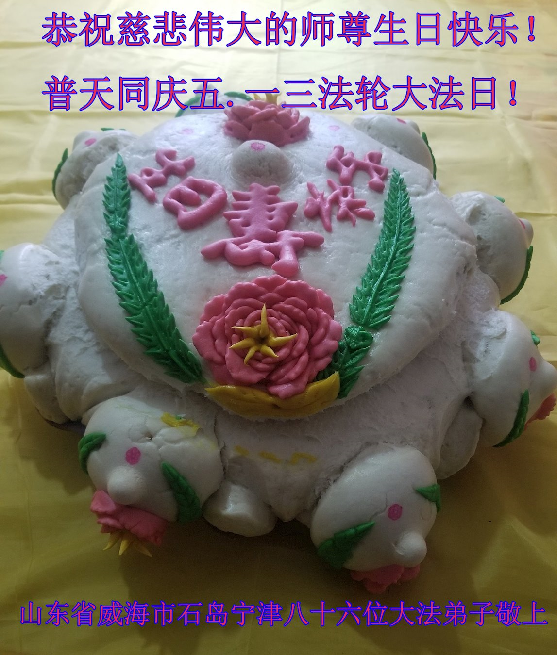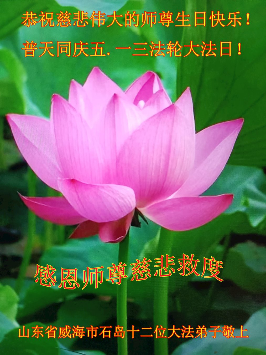 山东省威海石岛五人讲真相小组大法弟子恭祝慈悲伟大的师尊生日快乐!普天同祝世界法轮大法日!
