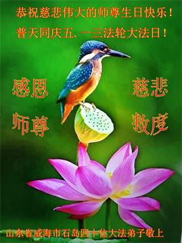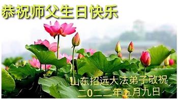 山东烟台招远一大法弟子恭祝师尊生日快乐!
