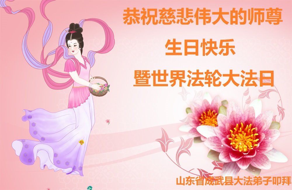 山东省菏泽市成武县全体大法弟子恭祝慈悲伟大的师尊生日快乐暨世界法轮大法日!