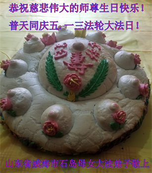 山东省威海石岛一学法小组二位大法弟子恭祝慈悲伟大的师尊生日快乐!普天同庆世界法轮大法日!