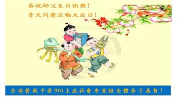 全球营救平台910主流社会专案组全体大法弟子恭祝师尊生日快乐!普天同庆世界法轮大法日!