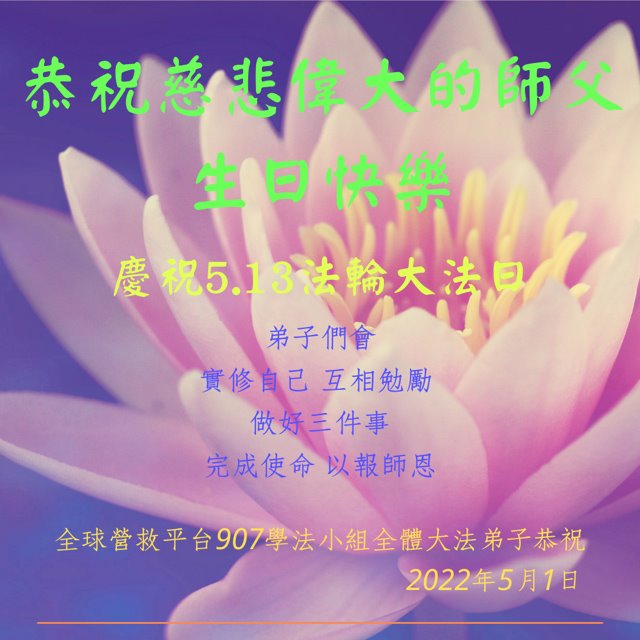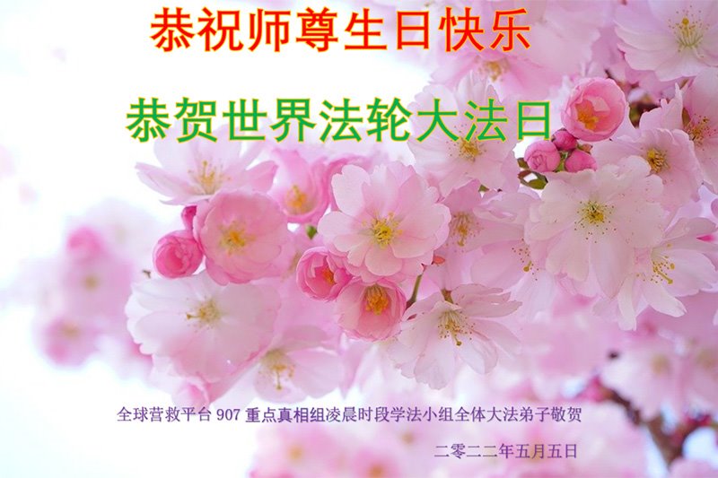 全球营救平台907学法小组全体大法弟子恭祝恭祝慈悲伟大的师父生日快乐!庆贺世界法轮大法日!