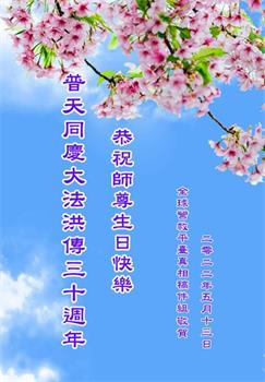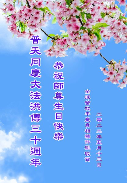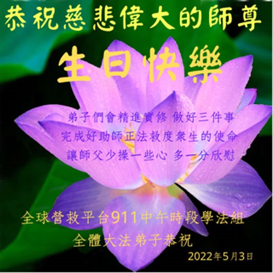 【明慧网二零二二年五月十三日】 全球营救平台全体大法弟子拜贺师父华诞!