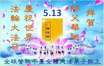 全球营救平台全体大法弟子拜贺师父华诞! 庆祝5·13世界法轮大法日! 全球.退:党!中心电话组DHT平台背法2房间大法弟子恭祝师尊生日快乐!