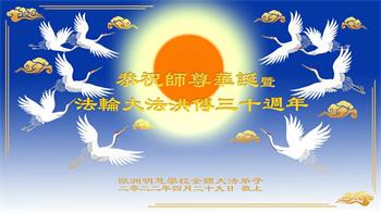 欧洲明慧学校大法弟子恭贺师尊华诞暨法轮大法洪传世界三十周年!