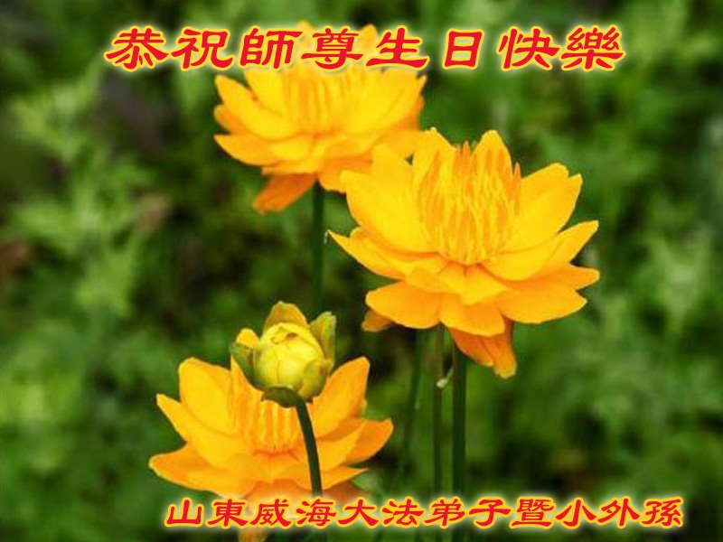 大法徒敬上 山东省烟台招远市一大法弟子携全家人恭祝师父生日快乐!恭贺世界法轮大法日!