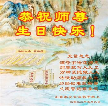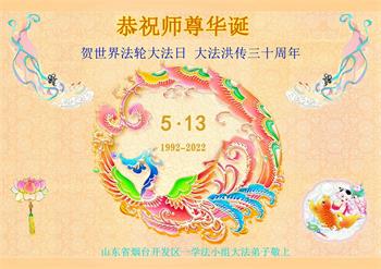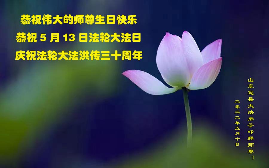 【明慧网二零二二年五月十三日】 山东省烟台市经济技术开发区一学法小组大法弟子恭祝师尊华诞!