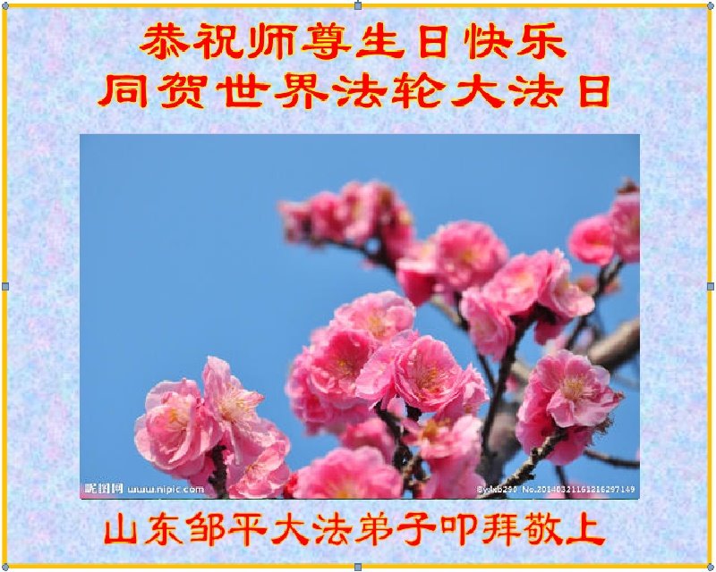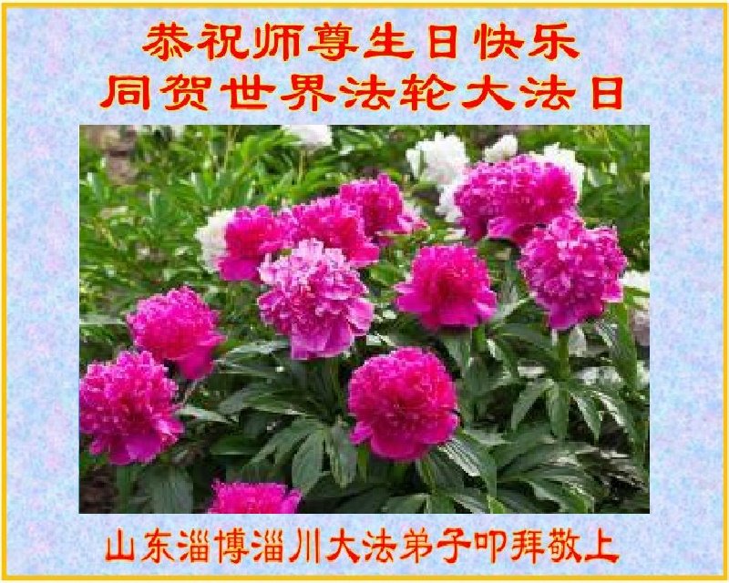 师尊您好!山东淄博淄川全体大法弟子恭祝慈悲伟大的师尊生日快乐!恭贺法轮大法洪传三十周年! 山东邹平全体大法弟子恭贺法轮大法日!