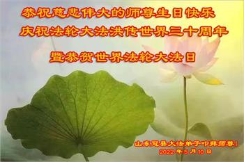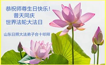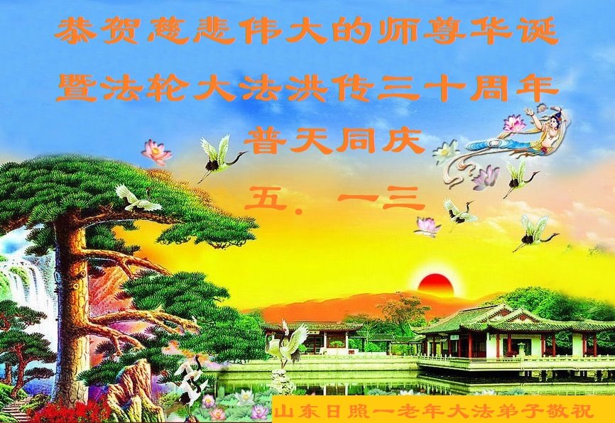 山东日照大法弟子恭祝师尊生日快乐! 山东日照一老年大法弟子恭贺法轮大法洪传世界三十周年