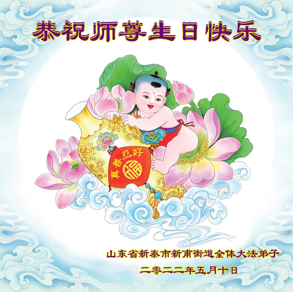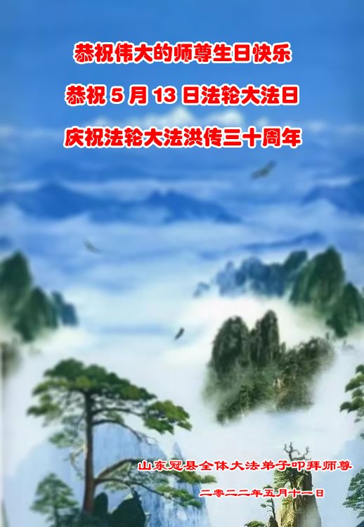 山东省泰安新泰市新甫街道全体大法弟子恭祝师尊生日快乐!普天同庆法轮大法洪传三十周年! 二零二二年五月十一日 山东省聊城市冠县全体大法弟子恭祝慈悲伟大的师尊生日快乐!