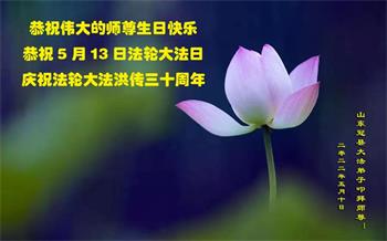 师尊您好!山东邹平全体大法弟子恭祝慈悲伟大的师尊生日快乐!恭贺法轮大法洪传三十周年! 山东泰安大法弟子恭祝师尊生日快乐!