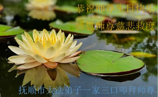 辽宁省抚顺市大法弟子一家三口恭祝师尊生日快乐!