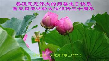 庆祝5·13世界法轮大法洪传30周年!恭祝师父生日快乐!感恩师父在这末劫末法时期把这宇宙大法洪传世间,我能有缘成为一名正法时期的大法弟子,很是荣幸,弟子一定要精進实修,修好自己,做好三件事,助师正法,跟师父回家。 辽宁鞍山市一县城一大法弟子敬上 二零二二年五月八日 中国辽宁鞍山一大法弟子恭祝师尊生日快乐!