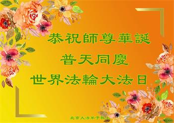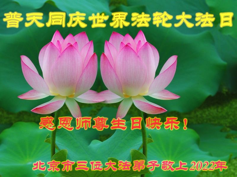 值此世界法轮大法日之际,恭祝慈悲伟大的师尊生日快乐!我们要更加珍惜时间,做好三件事。修好自己,救度众生,圆满随师还。 北京大法弟子恭祝师尊华诞!