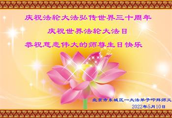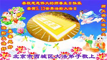 北京海淀区大法弟子恭祝师尊生日快乐暨法轮大法日!