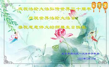 北京市海淀区一大法弟子敬贺法轮大法日!