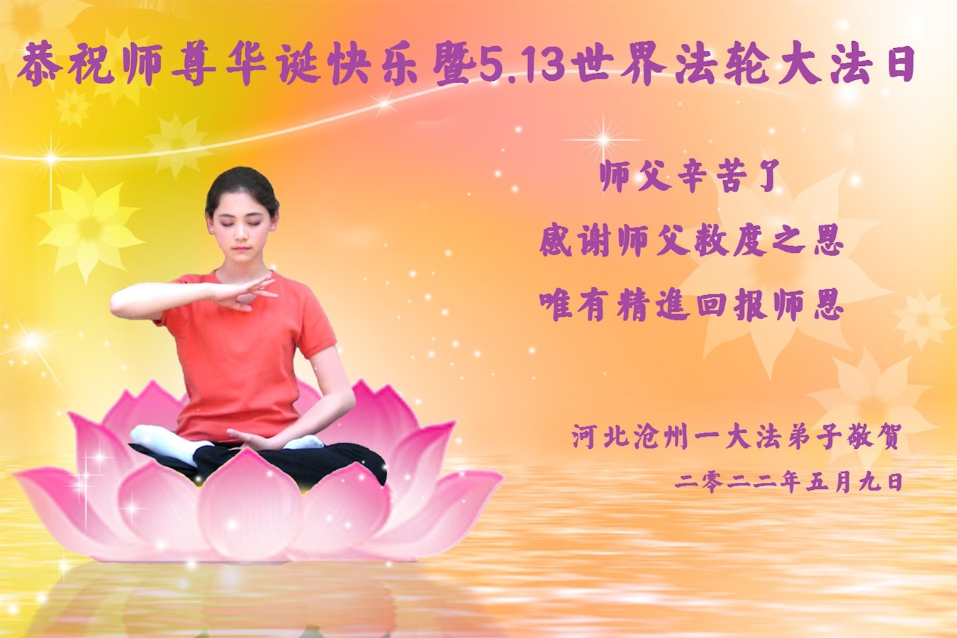 【明慧网二零二二年五月十三日】 河北沧州一大法弟子恭贺师尊华诞快乐暨5.13世界法轮大法日!