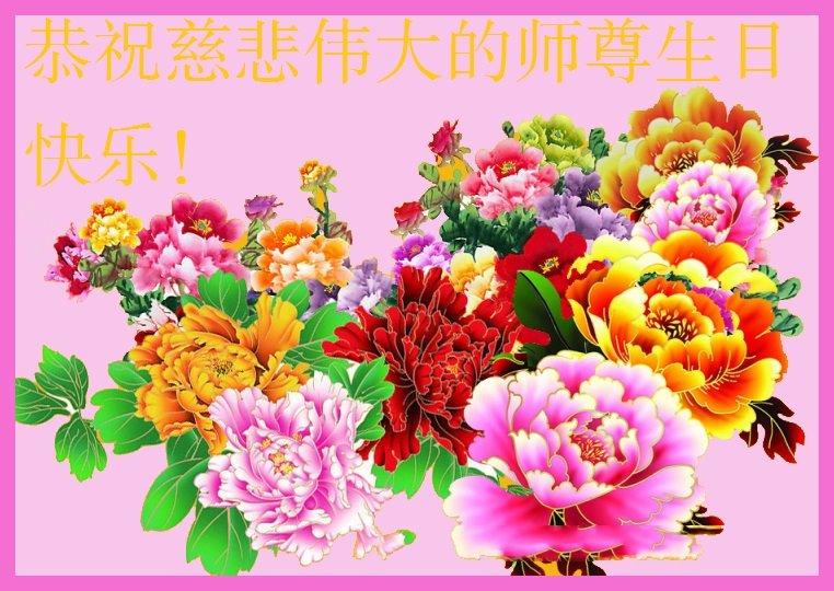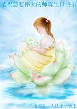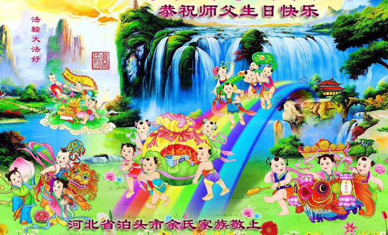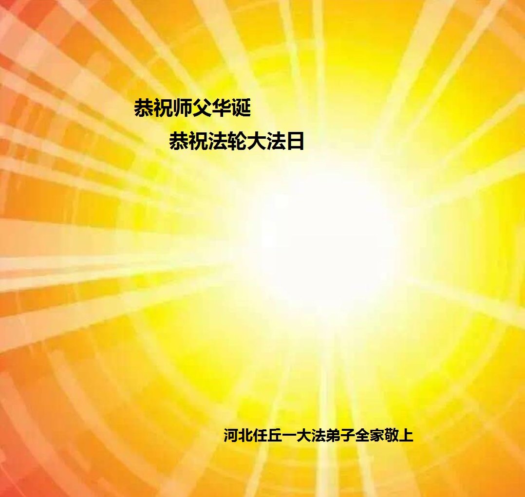 五月十三日师父的生日到了,同时也是世界法轮大法日。师尊的到来,拯救了无穹天体以至宇宙无量无计的众生,其中包括我这小小的生命,弟子无以言表师尊的救度之恩。在这转眼即逝的宝贵时间之余,弟子一定能遵从师尊之教诲,做好三件事,正念正行,助师正法,增添正念去人心,走好走正正法修炼路。 从一个满身罪业的生命,能在师尊的佛恩浩荡中走在正法的神道上,是多么的幸运与伟大,千言万语表不尽师尊的无私救度之恩,弟子发自内心以至生命的微观细胞,恭祝师父生日快乐! 河北省沧州市任丘市一大法弟子全家恭祝法轮大法日