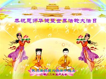 湖北省武汉市武昌区大法弟子携家人恭祝师尊生日快乐!热烈庆祝世界法轮大法日! 湖北省武汉市东西湖区一学法小组大法弟子恭祝师父生日快乐!