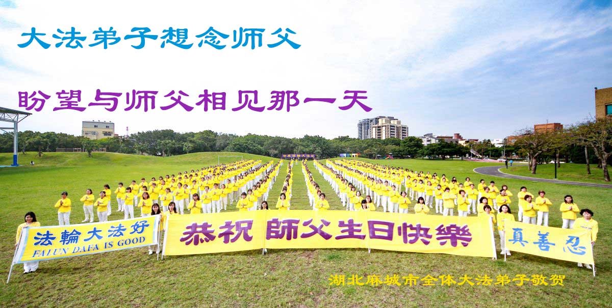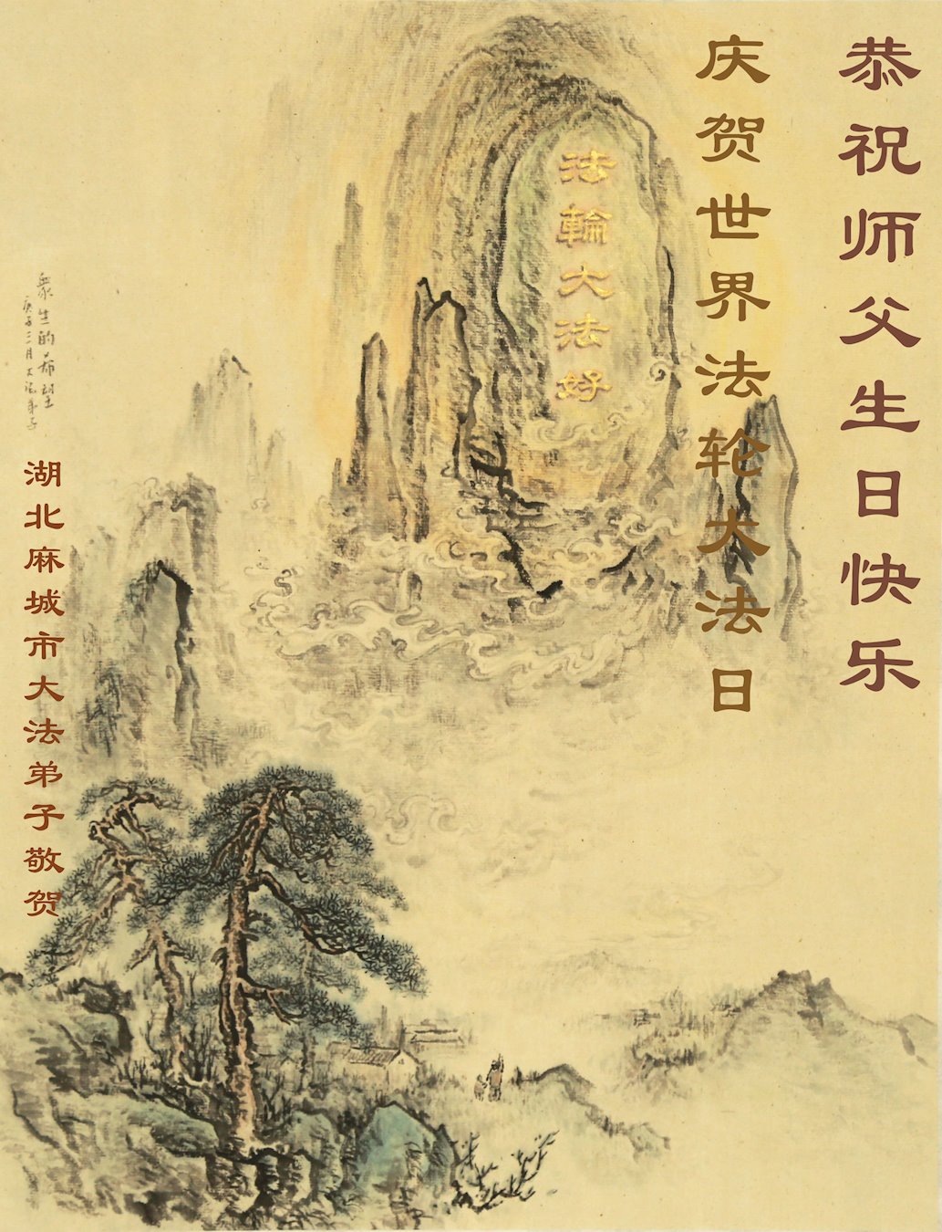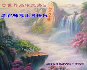 湖北省黄冈市麻城市大法弟子恭祝师尊生日快乐!庆贺世界法轮大法日!
