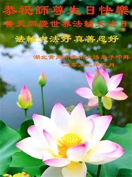 湖北省黄石市大法弟子恭祝师尊生日快乐!恭贺世界法轮大法日!