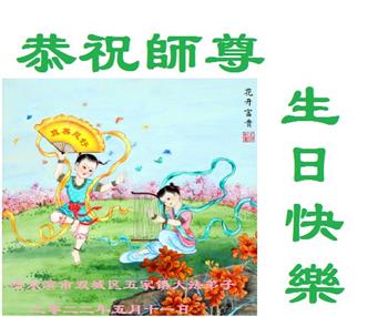 哈尔滨一老年大法弟子恭祝师尊生日快乐! 黑龙江省哈尔滨大法弟子学法小组大法弟子恭祝师尊生日快乐!同贺5.13世界法轮大法日!
