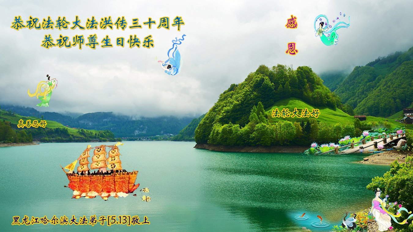 黑龙江省哈尔滨大法弟子恭祝师尊生日快乐!同贺5.13世界法轮大法日!
