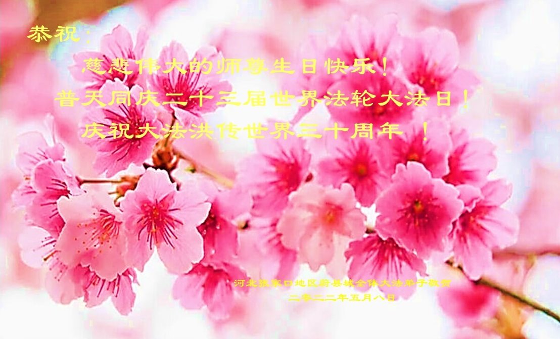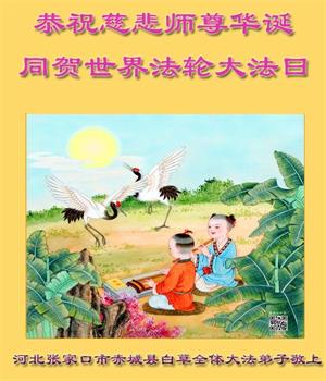 河北省张家口市蔚县一大法弟子恭贺法轮大法日,恭祝师父生日快乐!
