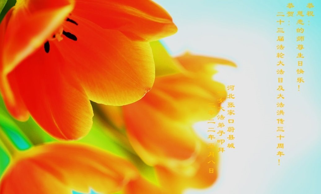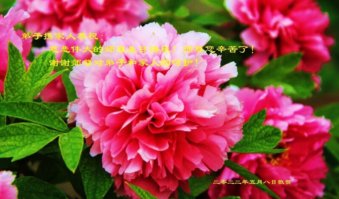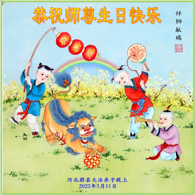 【明慧网二零二二年五月十三日】 河北张家口地区蔚县城一家三名大法弟子恭祝师尊生日快乐!