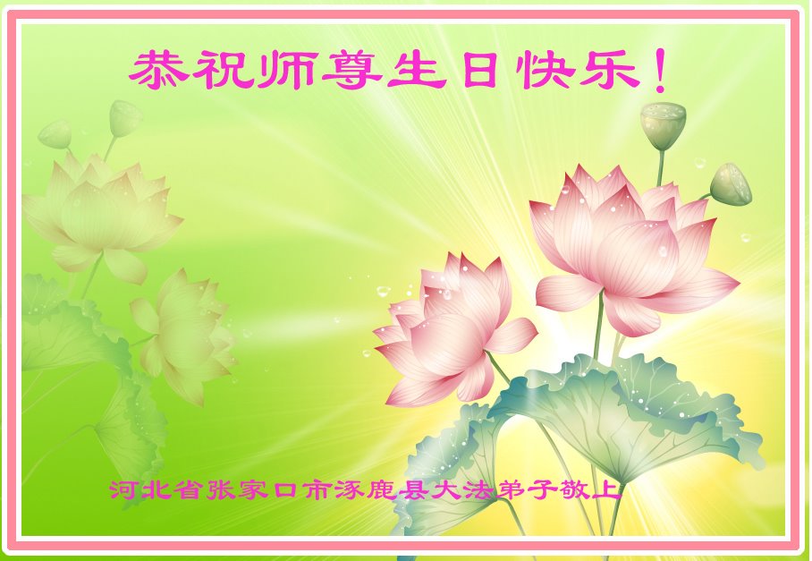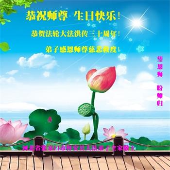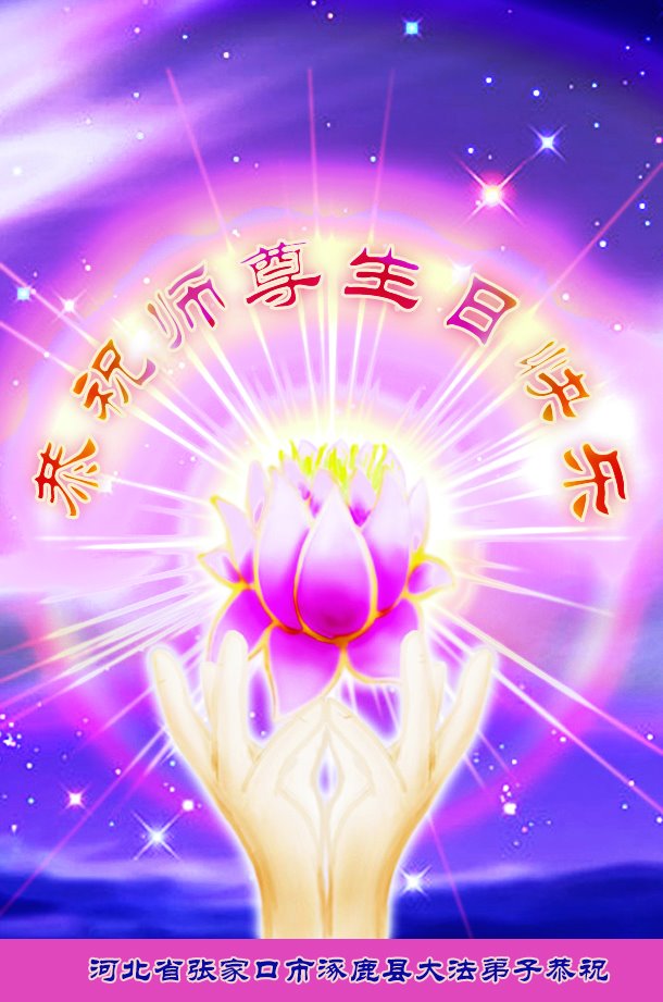 弟子恭祝师父生日快乐!叩谢师父救度洪恩!弟子一定要在最后这段路上精進实修跟上师父,走正走好师父给安排的路,多救众生,请师父加持弟子,谢谢师父! 河北省张家口市涿鹿县两名大法弟子恭祝师尊生日快乐!