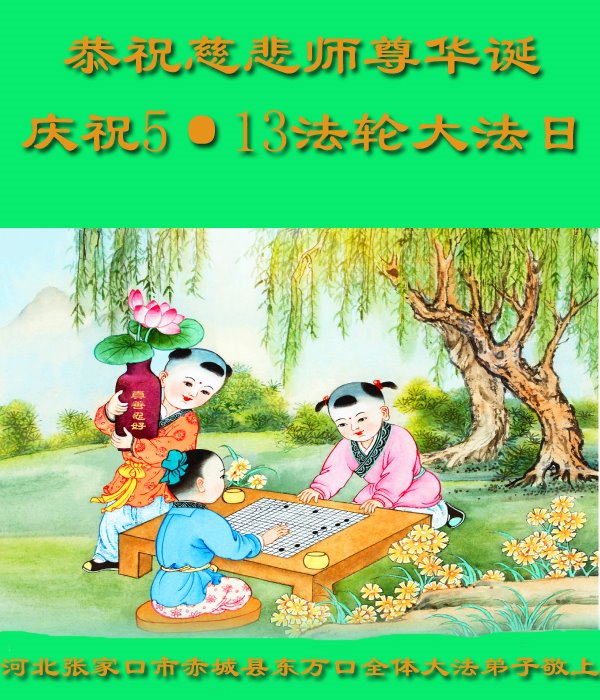 庆祝五·一三法轮大法日!河北张家口市赤城县东卯镇大法弟子向慈悲伟大的师尊问好!感谢师父慈悲救度之恩!感谢师尊救了我们全家!谢谢师父!法轮大法好!真、善、忍好! 河北张家口蔚县城一学法小组五名大法弟子恭祝师尊生日快乐!