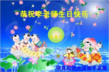 李大师好。我相信法轮大法好。法轮功好,法轮大法弟子好。李大师生日快乐!谢谢李老师给我调整身体。 吉林辽源一明真相的世人恭祝师尊生日快乐!