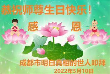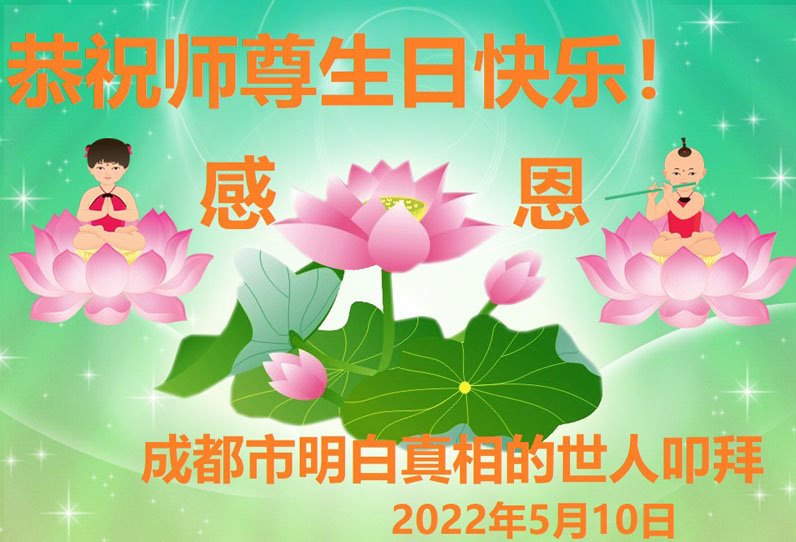 值此2022年5.13世界法轮大法日暨师尊华诞来临之际,河北省曲周县东南一家三口及明真相的孩子们恭祝师尊生日快乐,师尊您辛苦了,谢谢师尊! 四川省成都明白真相的世人恭祝师尊生日快乐!恭贺世界法轮大法日!