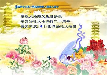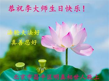 北京昌平一明真相的大法弟子家属恭祝师父生日快乐!恭贺世界法轮大法日!