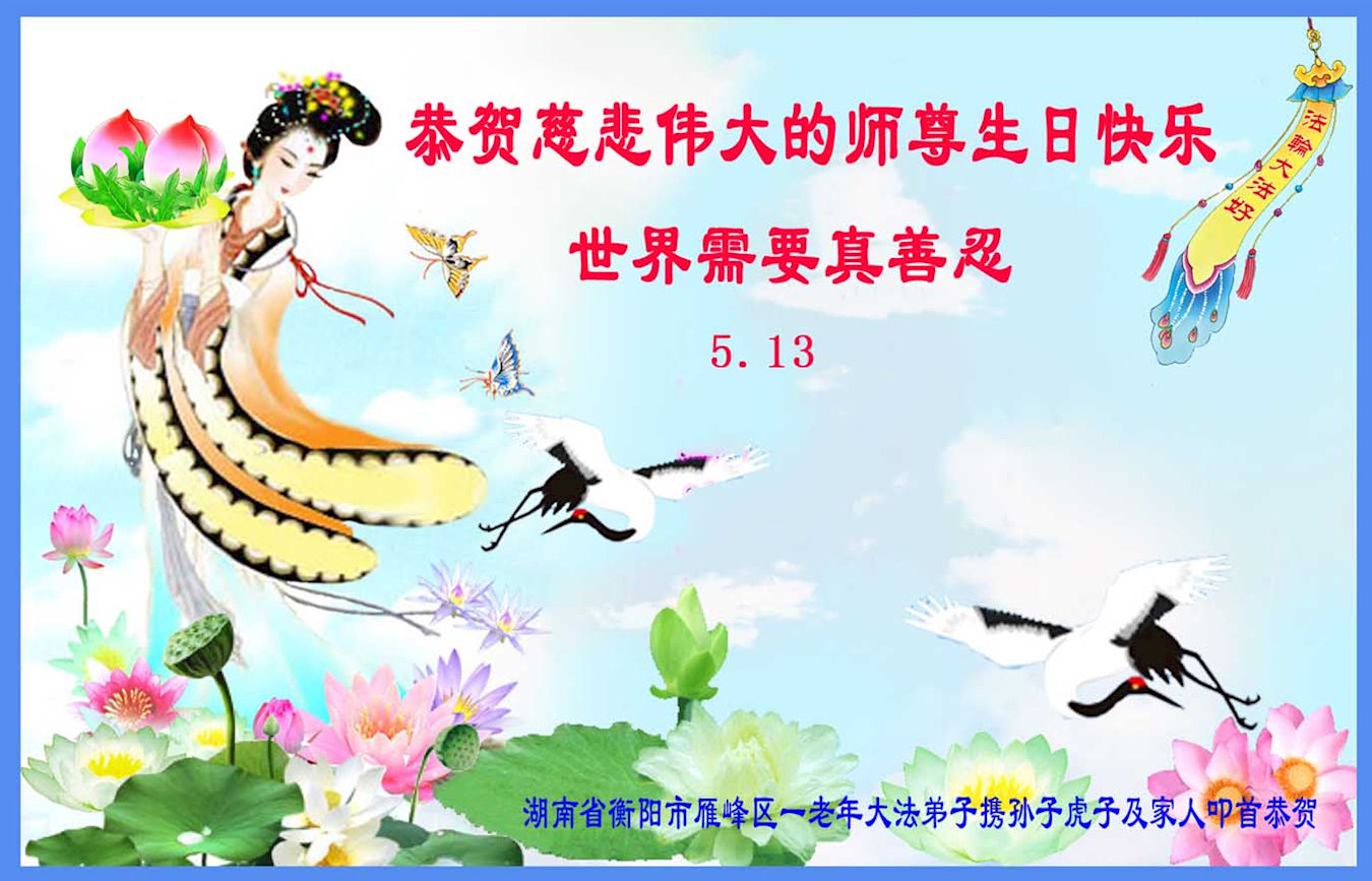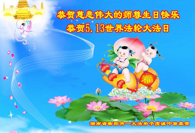 恭祝慈悲伟大的师尊生日快乐! 恭贺5.13世界法轮大法日! 湖南省衡阳市珠晖区大法弟子们叩首恭贺 湖南一大法弟子恭祝师尊生日快乐!