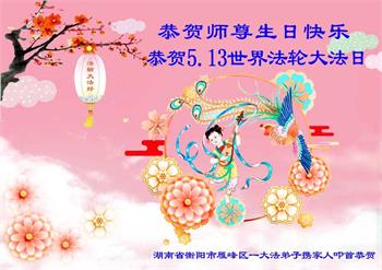 恭贺5.13世界法轮大法日! 恭祝师尊生日快乐! 恭贺5.13世界法轮大法日! 湖南省衡阳市蒸湘区一大法弟子携女儿及全家叩首恭贺 湖南省衡阳市石鼓区大法弟子们叩首恭祝师尊生日快乐!
