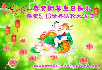 湖南省永州一大法弟子携家人恭贺5.13世界法轮大法日!祝贺法轮大法传世三十周年!