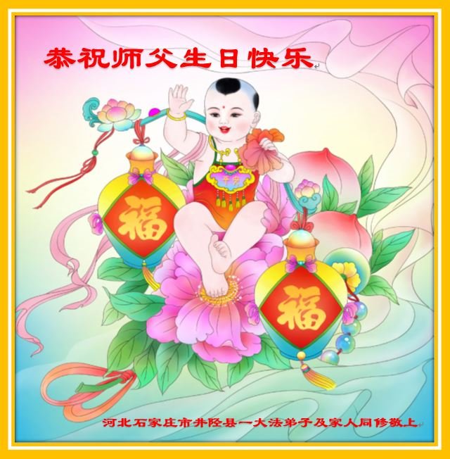 石家庄市新华区赵陵铺一大法弟子全家恭祝慈悲伟大的师尊生日快乐!恭贺世界法轮大法日! 师父辛苦了,请师父放心,弟子们一定会利用好这最后的正法时间,学好法、实修自己,多发正念、广救众生,紧跟正法進程,做好三件事,以报师尊救度洪恩! 大法弟子叩谢恩师! 河北省石家庄一大法弟子恭祝慈悲伟大的师父生日快乐!