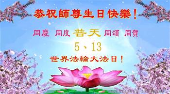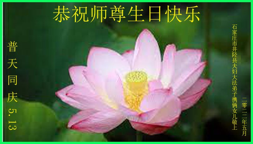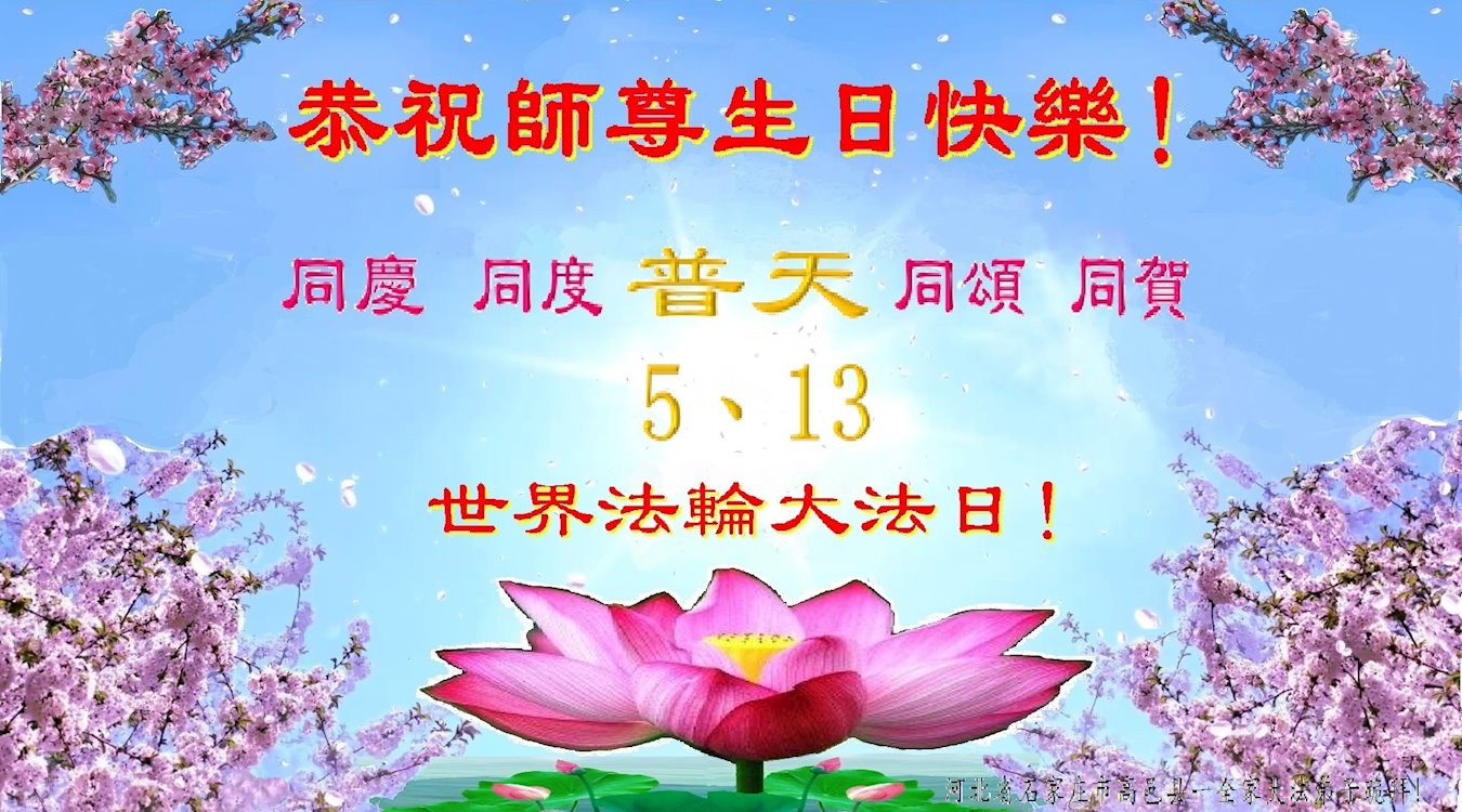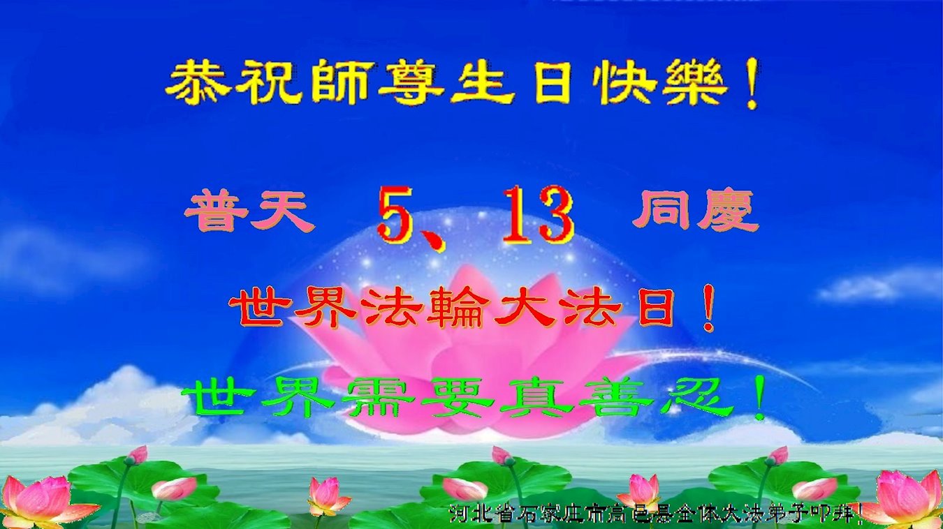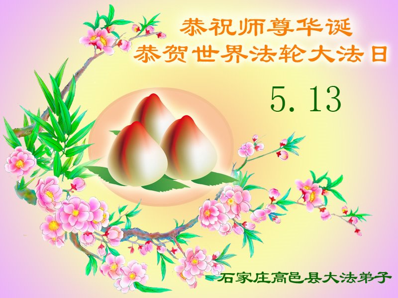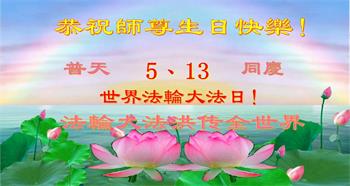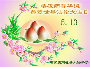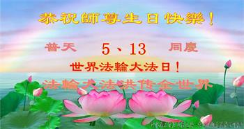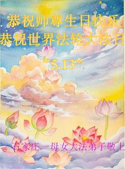 恭贺世界法轮大法日! 石家庄高邑县大法弟子恭祝慈悲伟大师尊生日快乐! 恭贺513世界法轮大法日! 河北石家庄市母女大法弟子恭贺法轮大法日!