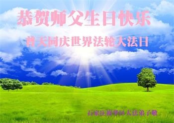 河北省石家庄市新华区一学法小组大法弟子恭祝慈悲伟大的师尊生日快乐!恭贺世界法轮大法日!