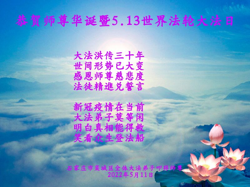 石家庄市栾城区全体大法弟子恭贺师尊华诞暨5.13世界法轮大法日! 河北石家庄藁城大法弟子恭祝师父生日快乐!