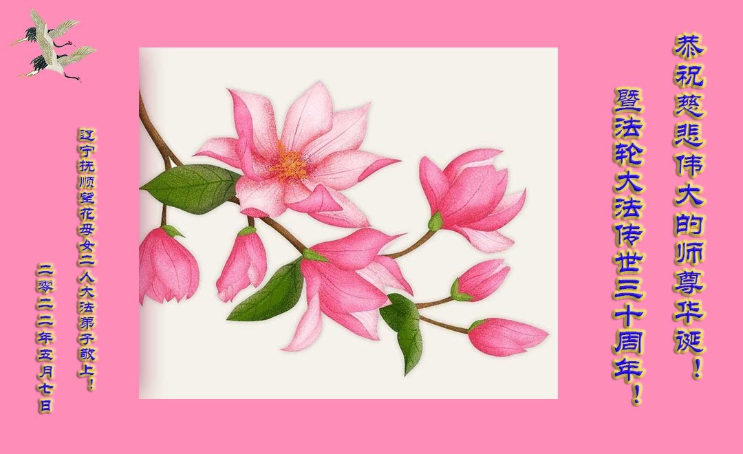 普天同庆法轮大法传世三十周年!弟子感恩师尊!弟子会用心学法,尽力做好三件事。 谢谢师尊! 辽宁抚顺望花一大法弟子敬上 二零二二年五月七日 辽宁抚顺望花母女二人大法弟子恭祝慈悲伟大的师尊华诞!