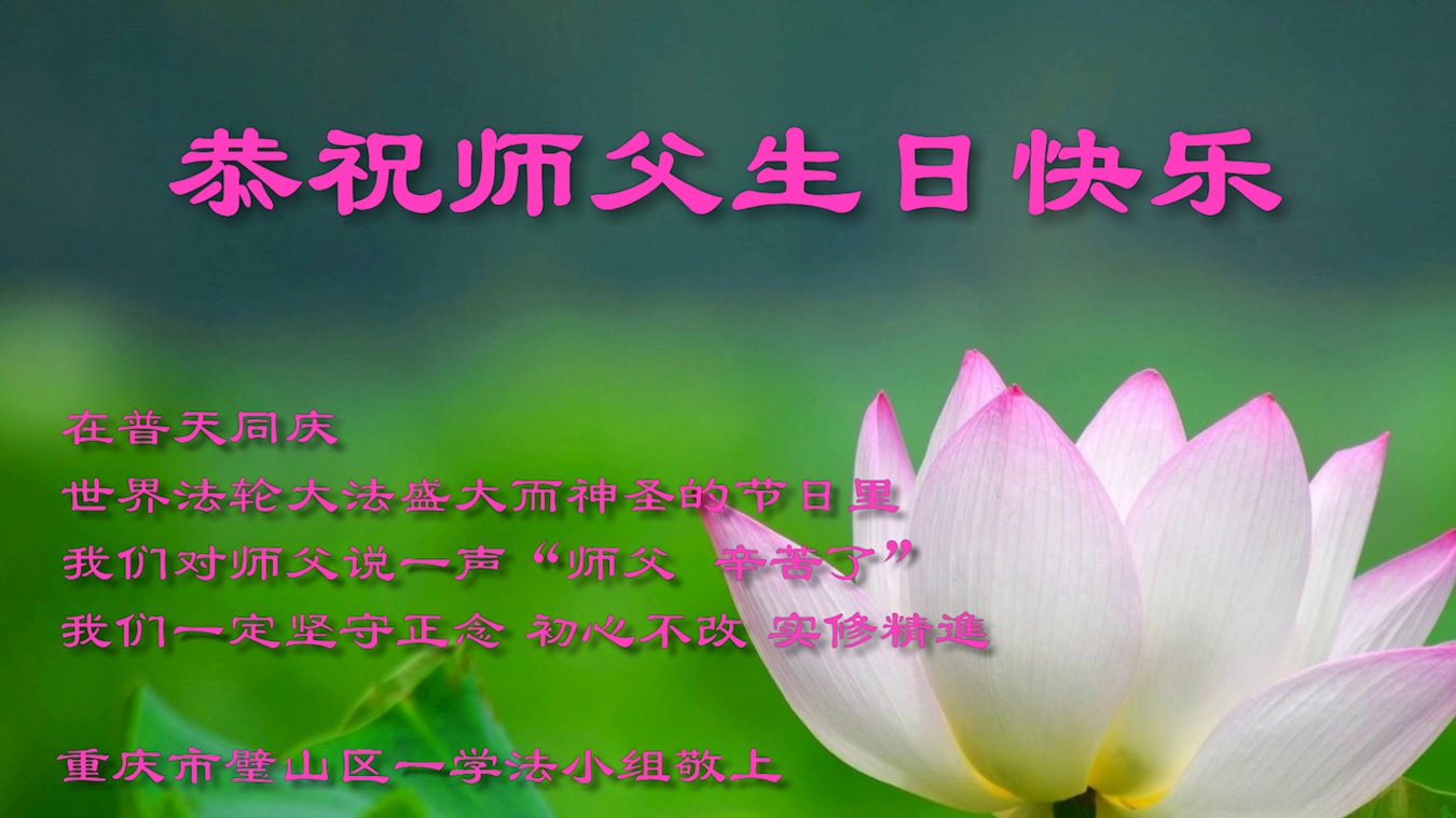 【明慧网二零二二年五月十三日】 重庆市璧山区一学法小组大法弟子恭祝师父生日快乐!