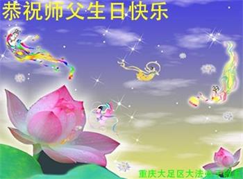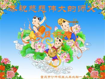重庆大法弟子恭祝慈悲伟大的师尊生日快乐!