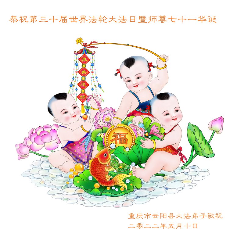 弟子感恩师父慈悲救度!我们听您的话,修好自己,做好三件事,证实大法,多救众生! 重庆开州一大法弟子和家人恭贺世界法轮大法日暨师尊华诞!