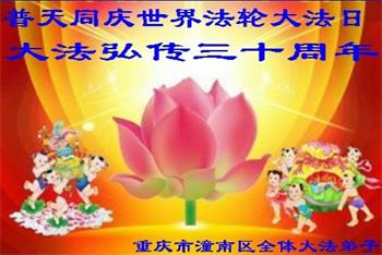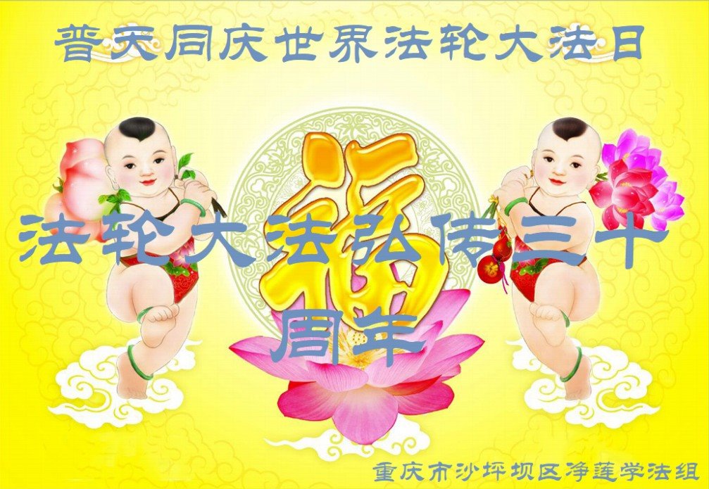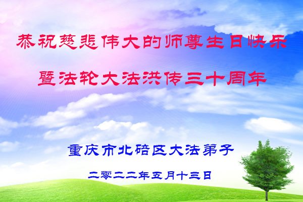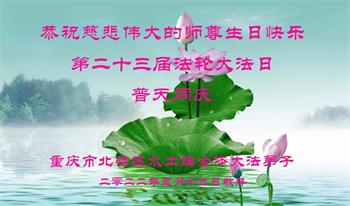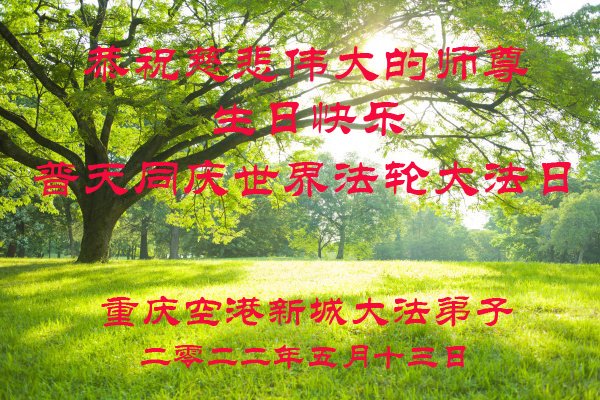 重庆市大法弟子恭祝师父生日快乐!恭贺世界法轮大法日!